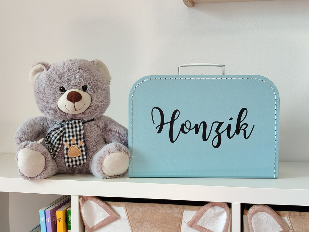 Kufřík se jménem na přání je krásným dárkem pro miminko. Může sloužit jako vkusná a originální dekorace do dětského pokojíčku i jako úložný prostor pro vzpomínkové předměty - například první ultrazvuk, náramek z porodnice, první botičky a mnoho dalšího.