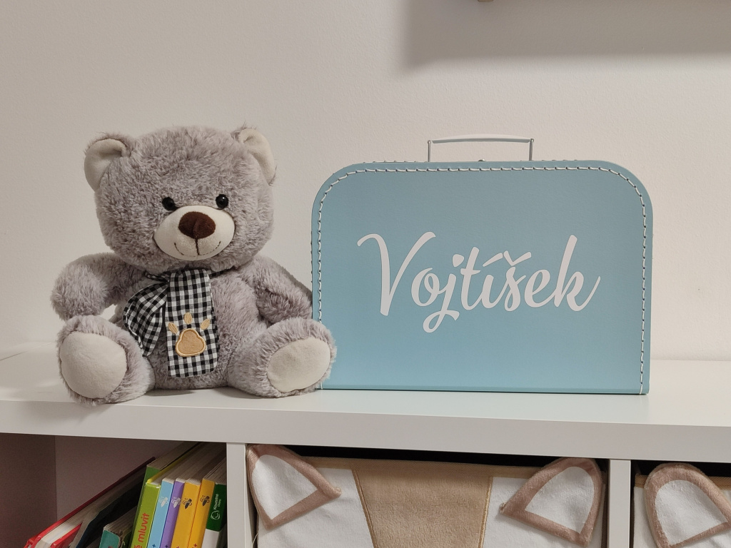 Vyberte si barvu kufříku a textu, napište jméno dítěte a vytvořte tak jedinečný dárek k narozeninám, Vánocům nebo jen tak pro radost.