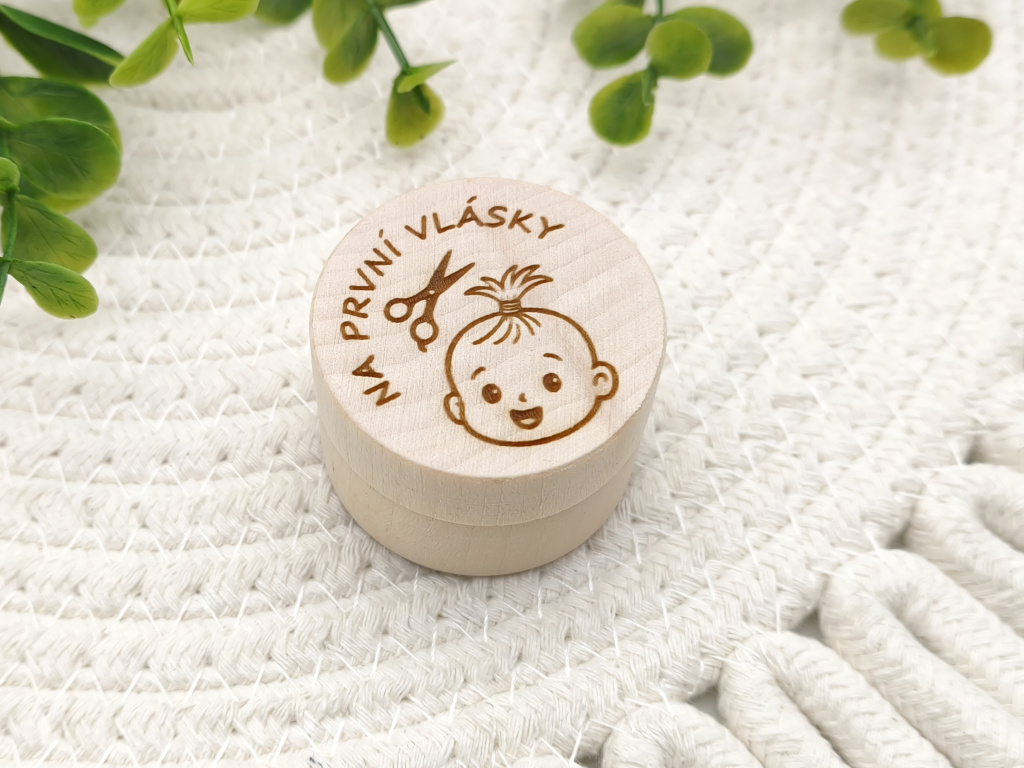 První pramínek vlásků je drobnou, ale krásnou vzpomínkou na nejranější chvíle s Vaším děťátkem. Tato dřevěná krabička s nápisem „Na první vlásky“ jej bezpečně uchová jako něžnou památku na dětství.