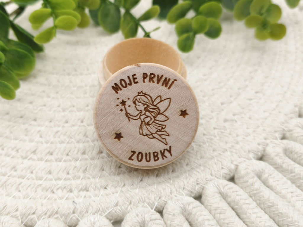 První zoubky si zaslouží své vlastní místo. Tato dřevěná krabička s nápisem „Moje první zoubky“ a jemným motivem víly je bezpečně uchová jako krásnou památku na dětství Vašeho děťátka. Díky přírodnímu dřevu a preciznímu gravírování vzniká milá vzpomínka, která Vám zůstane navždy. Více informací