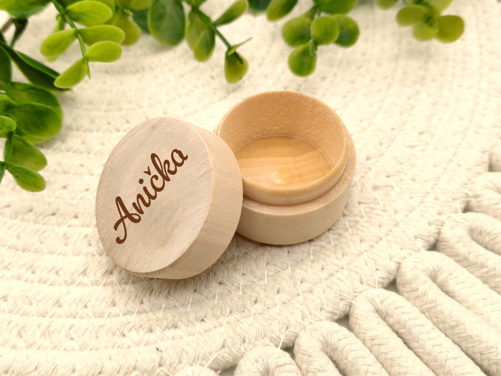 Personalizovaná dřevěná krabička se jménem na přání je ideální pro uchování prvních zoubků, pramínku vlásků i dalších drobných pokladů. Díky jemnému gravírování působí elegantně a stane se krásným doplňkem rodinných vzpomínek.