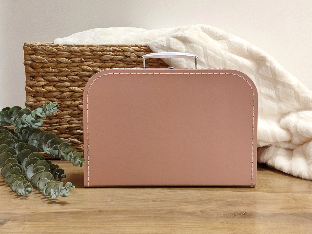 Elegantní růžový kufřík o velikosti 30 cm je praktickým i dekorativním doplňkem, který najde využití v každé domácnosti. Skvěle poslouží jako originální balení dárků, úschova vzpomínek či stylový úložný prostor na fotografie, hračky nebo jiné drobnosti. Využít jej můžete také při tvoření. Kufřík je vyroben z lepenky z recyklovaného papíru a je opatřen kovovým zavíráním a držadlem. Povrch kufříku je upraven vodou ředitelným lakem a barvami. Více informací