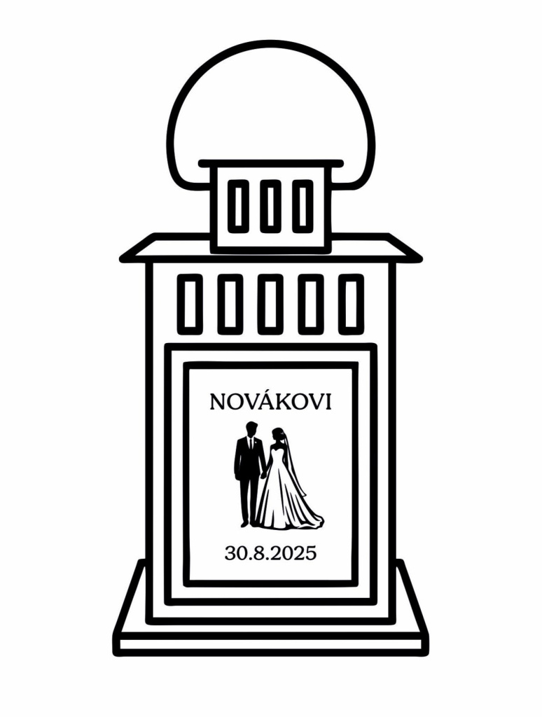 Každá lucerna je jedinečná – na jedno sklo umístíme společné příjmení novomanželů spolu s datem svatby dle Vašeho přání.
