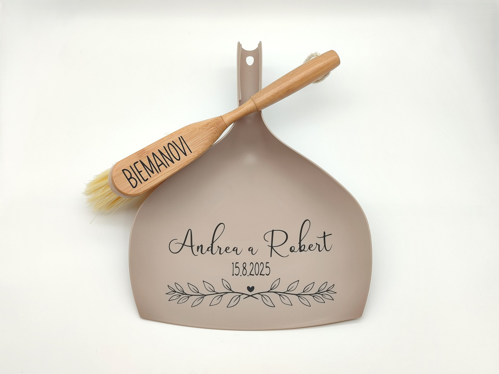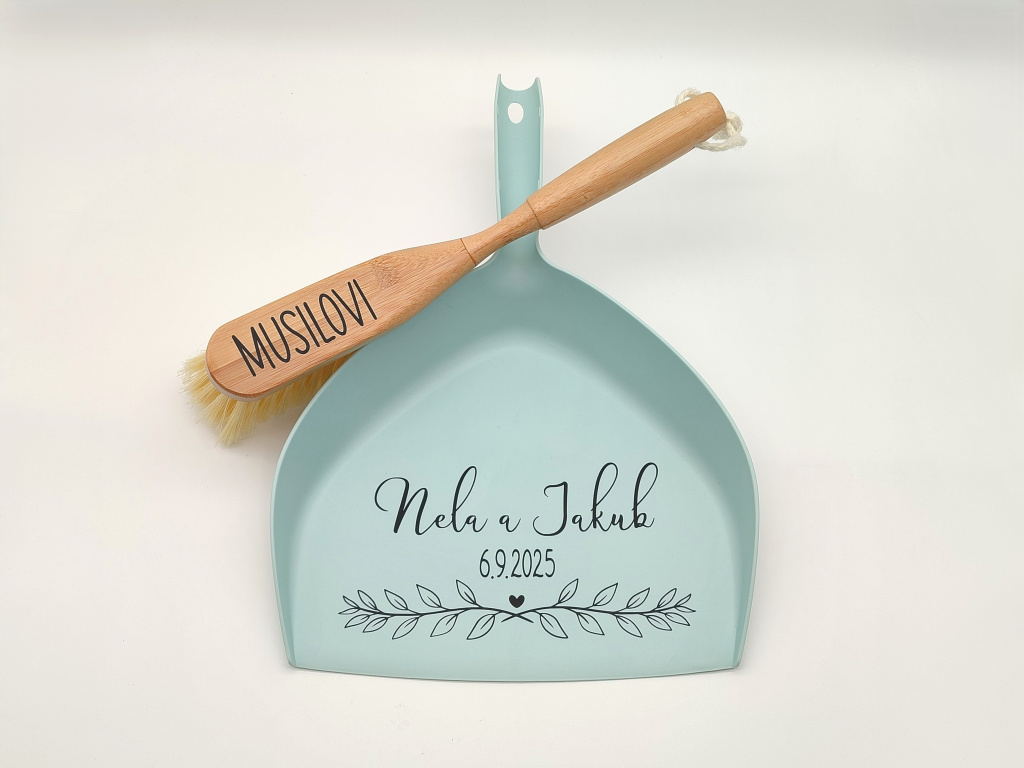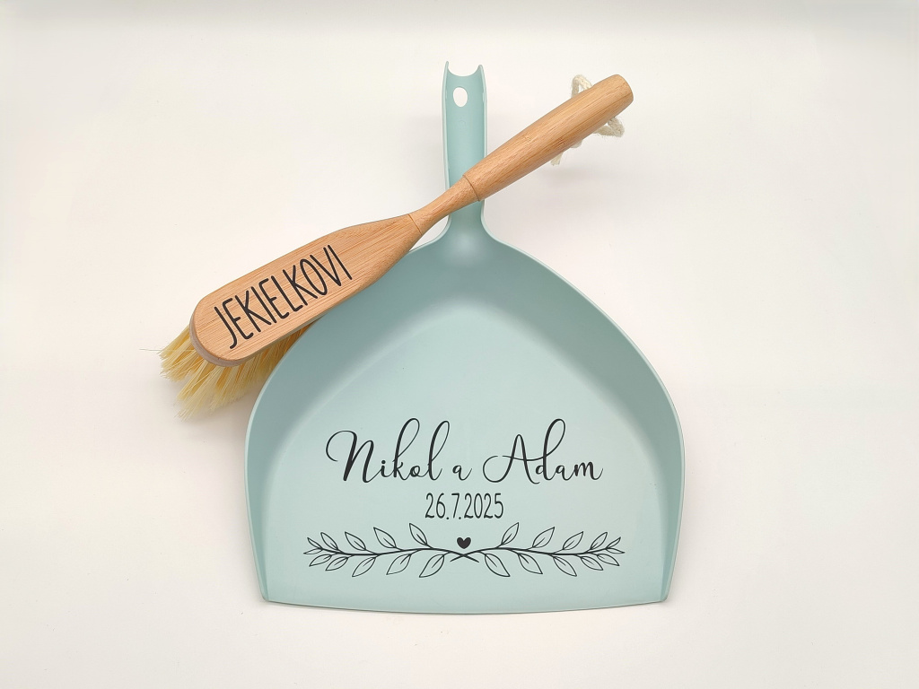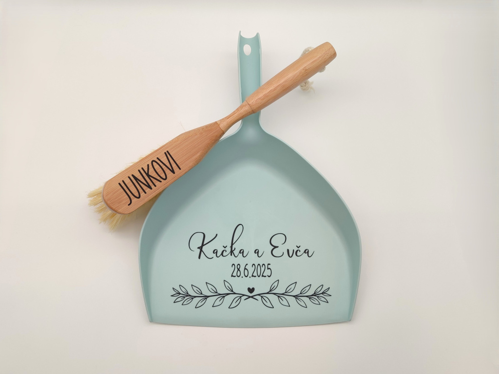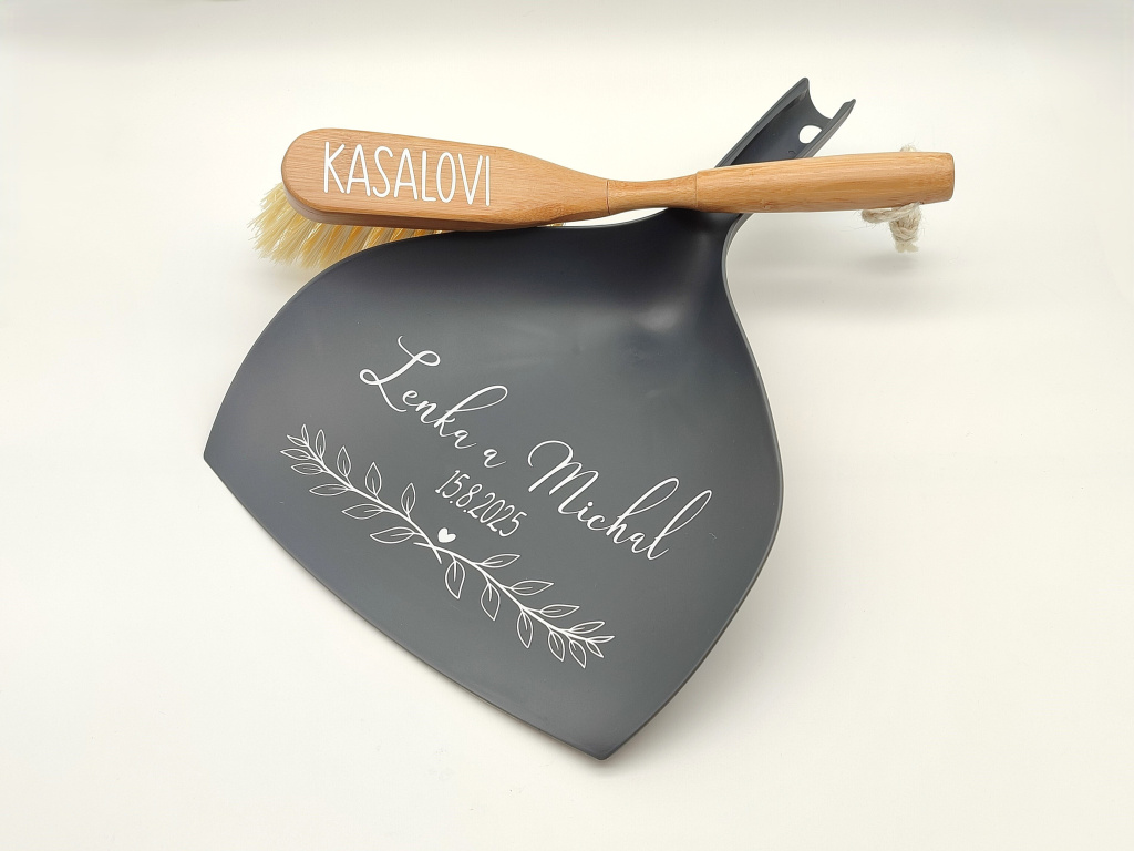 Lopatku zdobí jemný motiv větvičky, který působí přírodně, elegantně a nadčasově. Větvička symbolizuje růst, nový začátek a rozkvět společného života. Společně s Vašimi jmény a datem svatby vytváří harmonickou a osobní vzpomínku na den, kdy jste si řekli své ano. Na smetáčku je uvedeno společné příjmení novomanželů, které celý set krásně sjednocuje. Veškeré údaje i motiv jsou vyrobeny z kvalitní vinylové fólie s precizním a elegantním zpracováním.