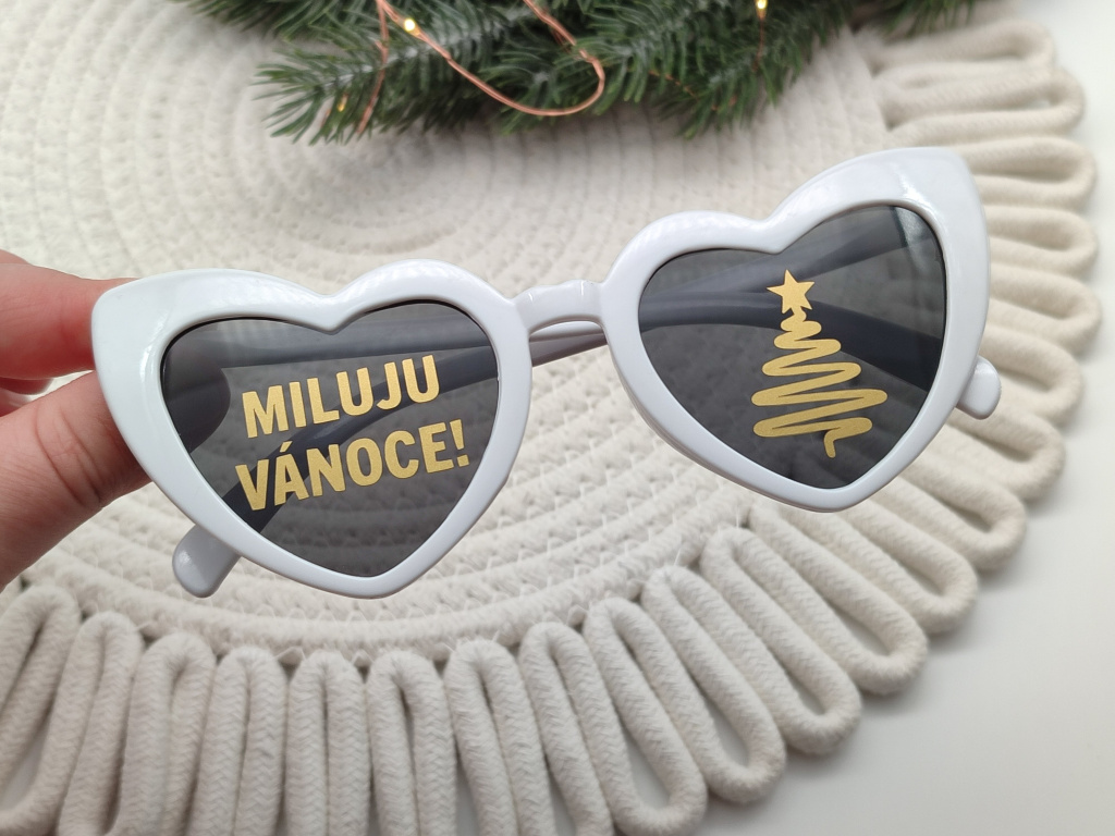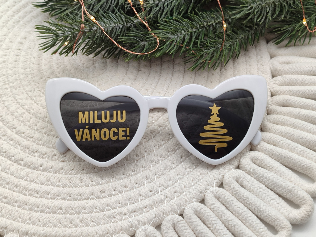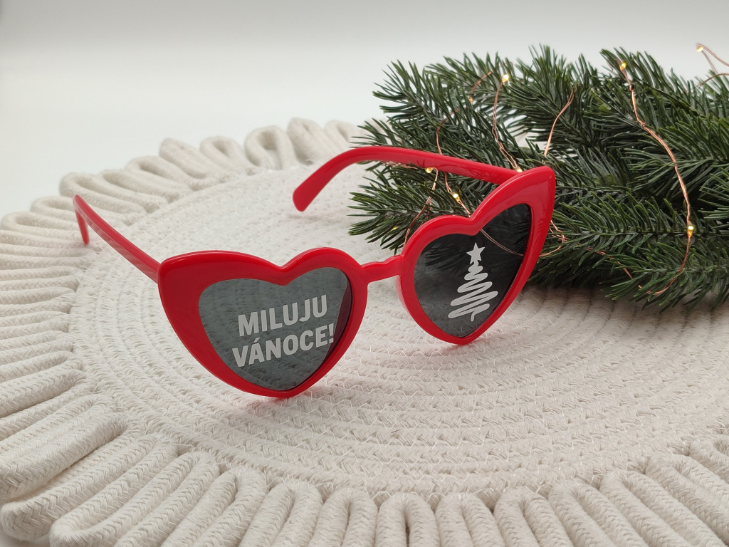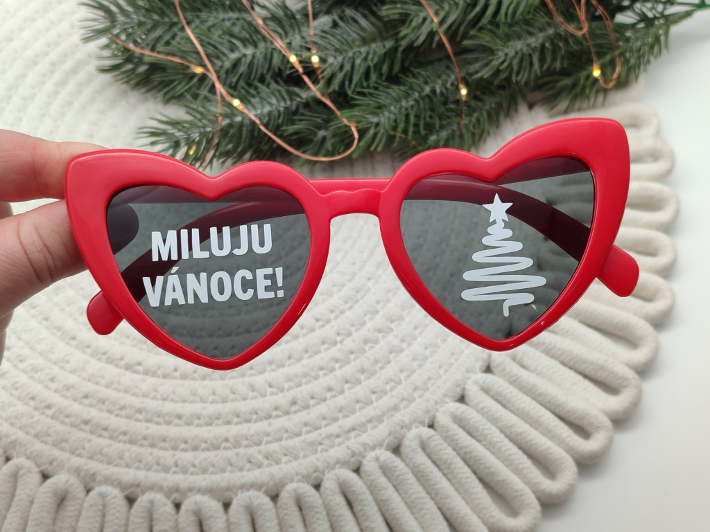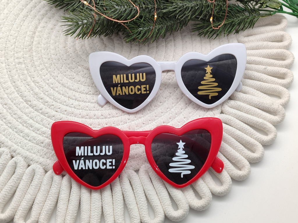 Stylové dekorativní vánoční brýle ve tvaru srdce s nápisem „Miluju Vánoce!“ a motivem vánočního stromečku jsou ideálním doplňkem pro vánoční večírky, rodinné oslavy, vánoční focení i silvestrovskou zábavu. Nápis je vyroben z kvalitní vinylové fólie, jejíž barvu si můžete zvolit v konfigurátoru produktu podle svých představ. Stejně tak si můžete vybrat i barvu samotných brýlí – k dispozici jsou varianty červená, bílá, černá, růžová a zelená. Více informací